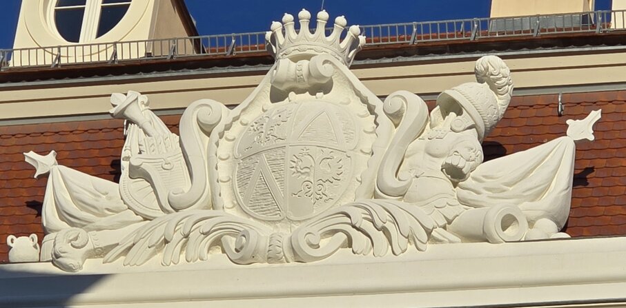 Diesmal waren wir wieder mit dem Fotoapparat in unserem schönen Dresden unterwegs. Dabei fanden wir dieses interessante Wappen, das in neuem Glanz wieder in Dresden prangt.